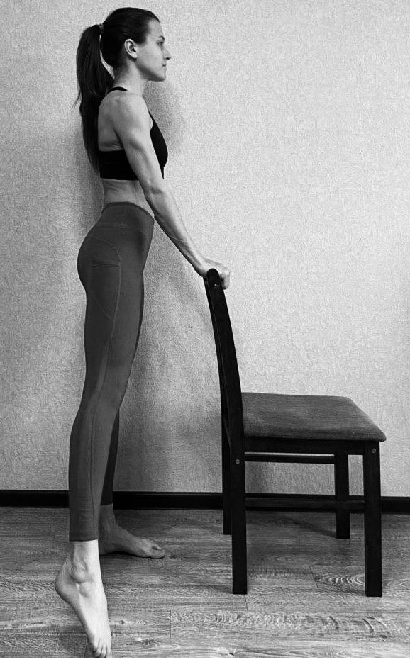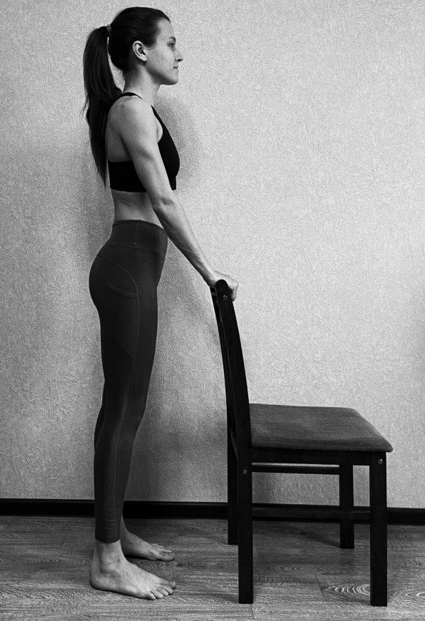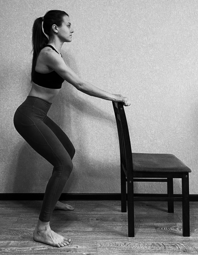 И.П. - стоя позади стула, руки на спинке стула.
