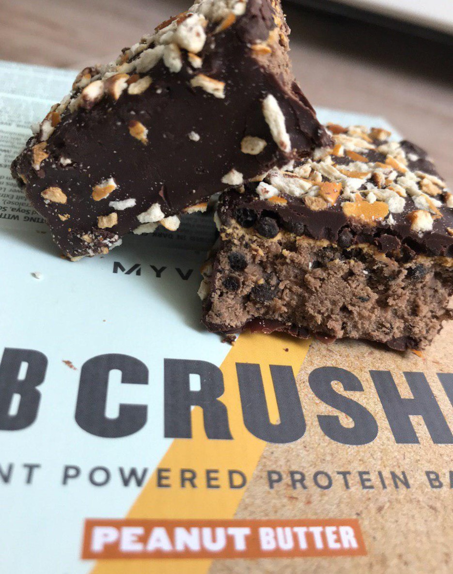 Батончик покрыт белым шоколадом, имеет вкус печенья с шоколадом (благодаря какао-порошку в составе), внутри очень вкусная тягучая карамель и протеиновые криспис. Если не знать, что это продукт с низким содержанием сахара, догадаться невозможно. Для сладкоежек – подарок. Для людей, которые к сладкому равнодушны, будут сладковаты.