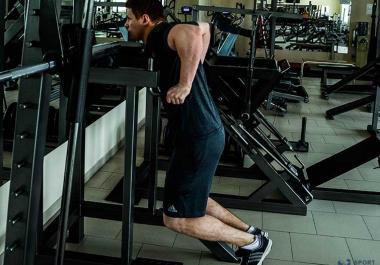 Делайте упражнение плавно, т.к. можете повредить плечевые связки. Читайте подробный разбор упражнения отжимания на брусьях.