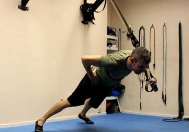 Усложнений вариант выполнения классического упражнения отжимания в петлях TRX. В отличии тяги одной рукой может вызвать затруднения у новичков. Так как необходимо в достаточной мере владеть своим телом. А также уметь равномерно распределять свой вес на точки опоры.