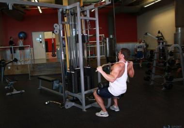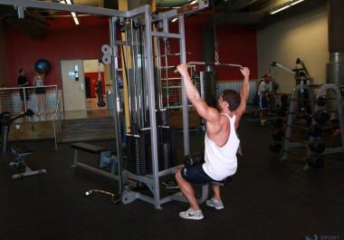 Тяга верхнего блока используется для нагрузки мышц спины. Упражнение представляет собой подтягивания – только не Вы тянетесь к перекладине, а рукоять тренажера тянется к Вам. Существует большое число модификаций данного упражнения, которые различаются шириной хвата – при узком и среднем (на ширине плеч) максимально загружены широчайшие мышцы спины, при широком – средняя часть спины и наружние пучки широчайших мышц.